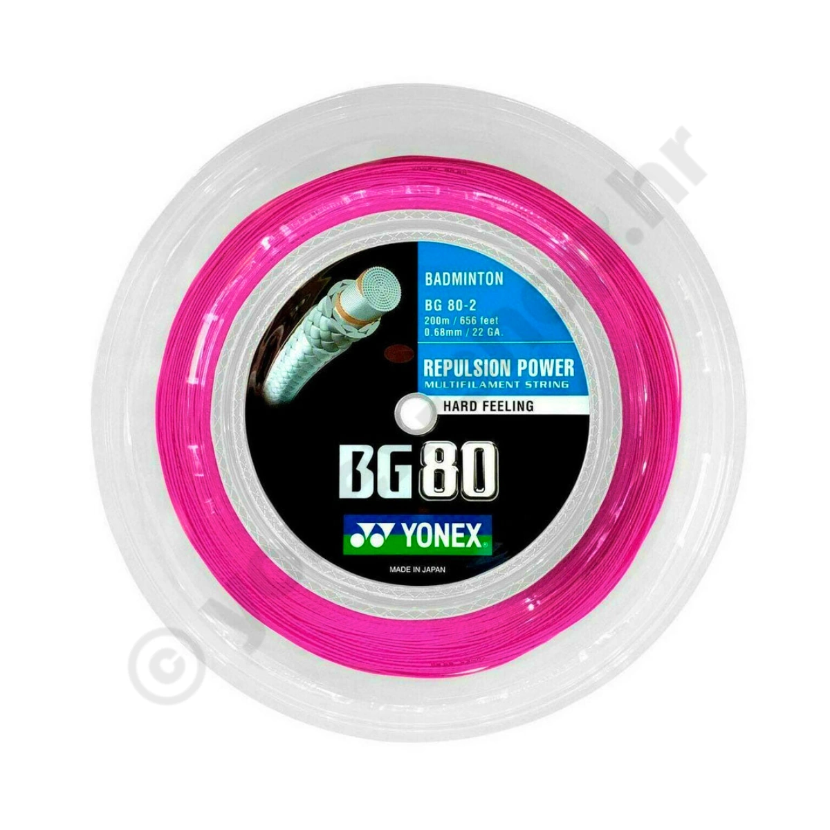 YONEX već godinama svojim žicama opskrbljuje međunarodni turnirski svijet u badmintonu. Yonex BG 80 je postala najpopularnija žica za badminton među profesionalcima. Bilo je i nekih inovacija posljednjih godina kao što su super-tanke Aerosonic (0,61 mm) ili Aerobite hibridne žice za rekete za badminton. Yonex BG 80 je malo grublja od Yonex BG 65 i stoga se loptica može bolje "zarezati". Žica pruža dobar osjećaj. YONEX BG 80 / 0,68 mm je uvjerljiva u svakom pogledu! Gotovo sve recenzije imaju vrhunske ocjene. Stoga nije ni čudo da je YONEX BG 80 jedna od žica koju najviše koriste profesionalci.