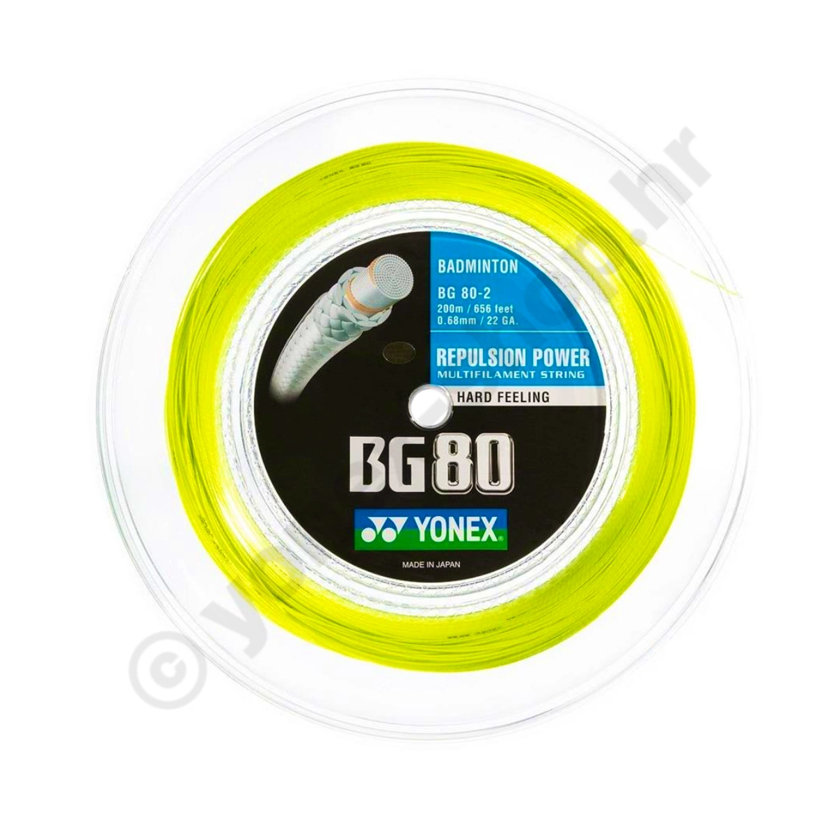 YONEX već godinama svojim žicama opskrbljuje međunarodni turnirski svijet u badmintonu. Yonex BG 80 je postala najpopularnija žica za badminton među profesionalcima. Bilo je i nekih inovacija posljednjih godina kao što su super-tanke Aerosonic (0,61 mm) ili Aerobite hibridne žice za rekete za badminton. Yonex BG 80 je malo grublja od Yonex BG 65 i stoga se loptica može bolje "zarezati". Žica pruža dobar osjećaj. YONEX BG 80 / 0,68 mm je uvjerljiva u svakom pogledu! Gotovo sve recenzije imaju vrhunske ocjene. Stoga nije ni čudo da je YONEX BG 80 jedna od žica koju najviše koriste profesionalci.